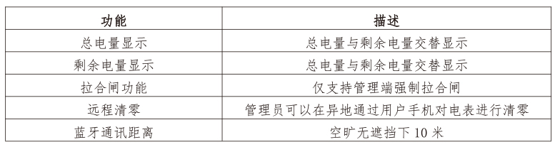 本产品采用先进的单片机处理系统进行数据的采集、处理和保存,在传统IC预付费电表基础上增加蓝牙通信功能,通过蓝牙通讯方式和手机连接,实现手机预缴电费功能。同时具有高精度、高可靠性、高过载、自身功耗低等特点,后台系统界面设计简洁美观,流程操作便捷,用户易上手使用,完美解决房东电费收缴困难,适用于公寓、物业、园区、校园等场景,主要功能如下: